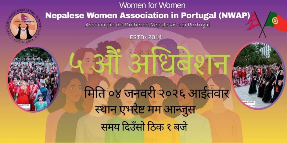 सन् २०१४ मा स्थापना भइ पोर्चुगलमा क्रियाशील नेपाली महिलाहरूको साझा तथा अग्रणी संस्था ‘नेप्लिज वुमन एसोशियसन पोर्चुगल’ले आफ्नो पाँचौं अधिवेशन भव्यताका साथ सम्पन्न गर्ने तयारी तीब्र भएको छ ।